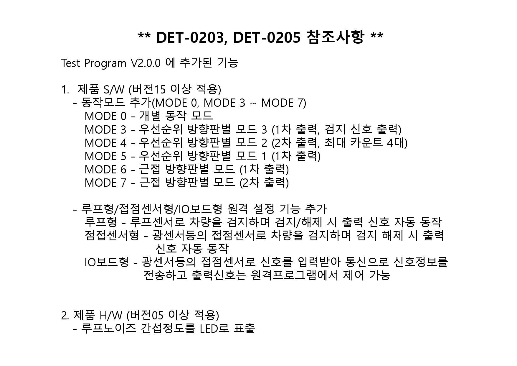 DET-0203, DET-0205 버전 업그레이드 기능 참조사항
