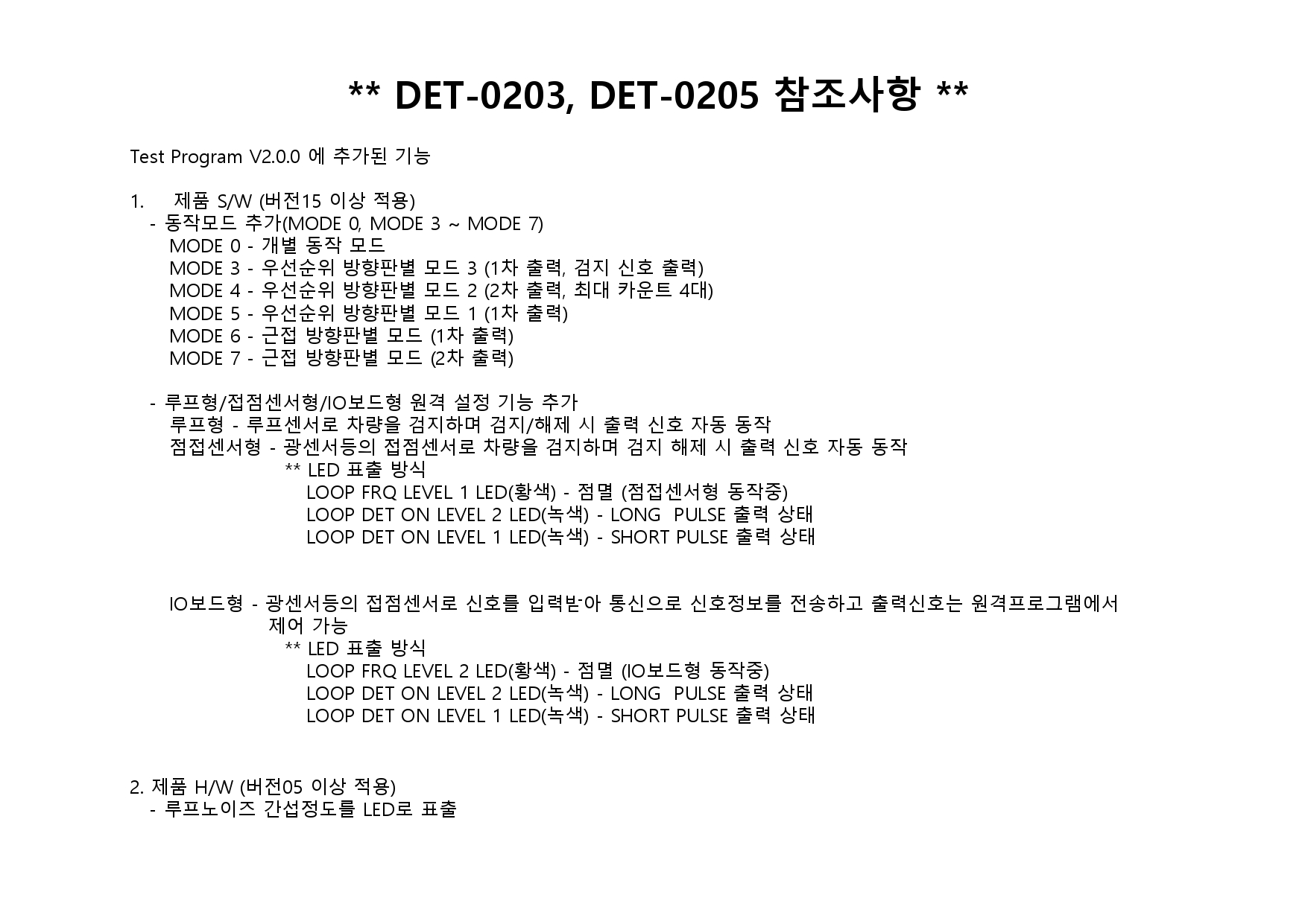 DET-0203, DET-0205 버전 업그레이드 기능 참조사항