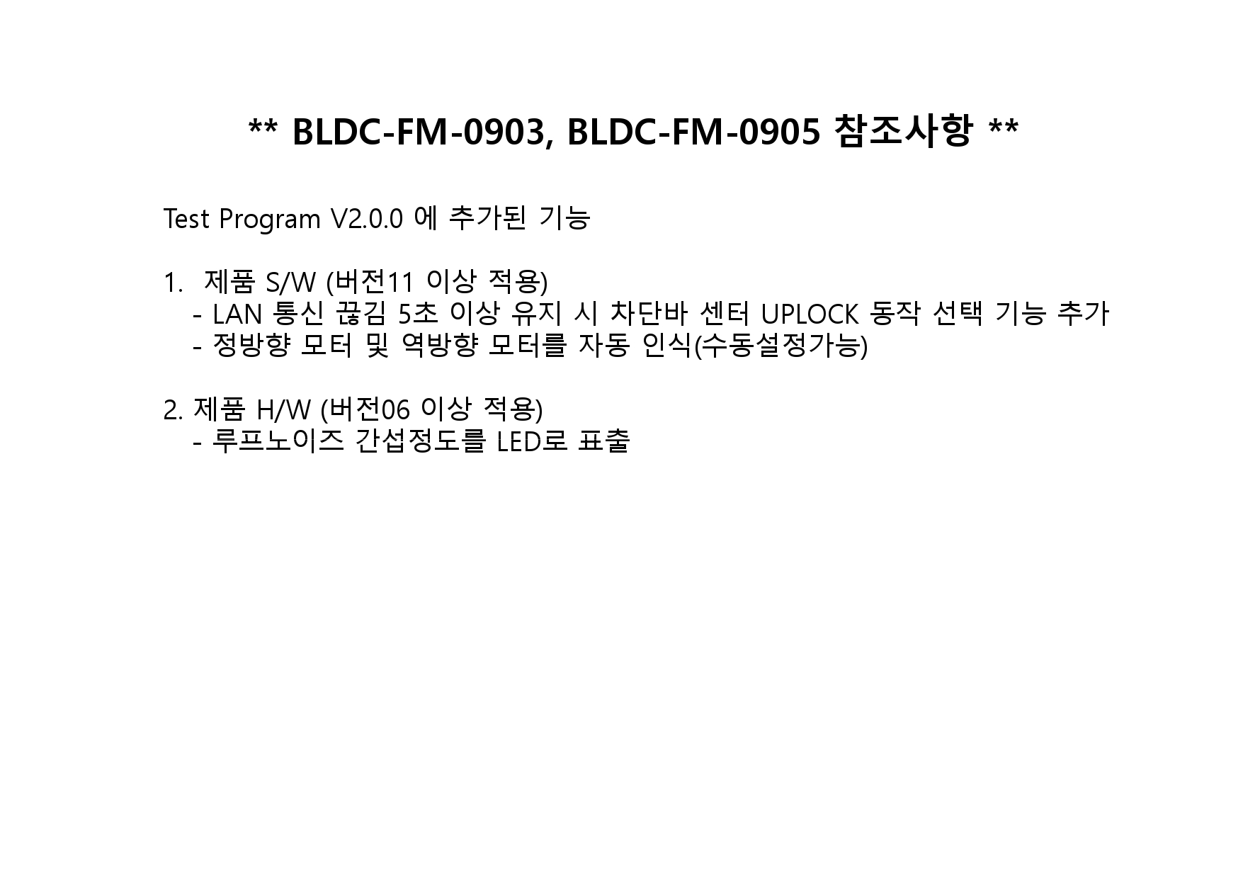 BLDC-FM-0903, BLDC-FM-0905 버전 업그레이드 기능 참조사항